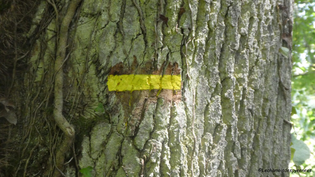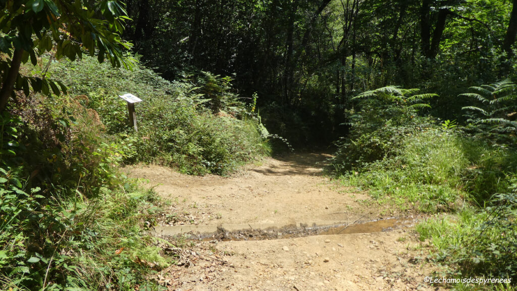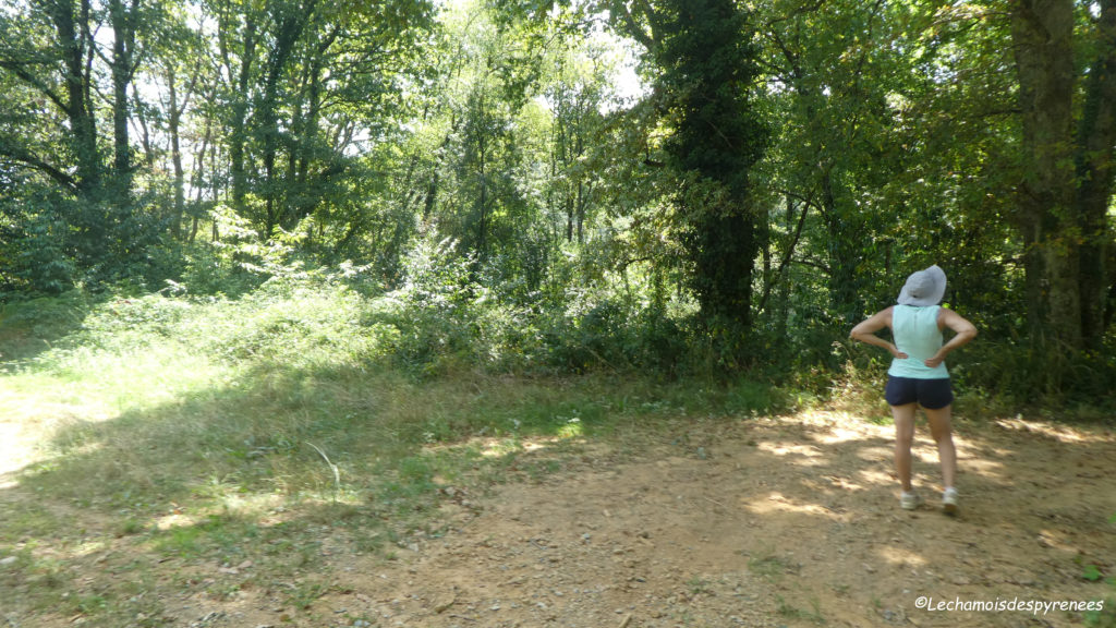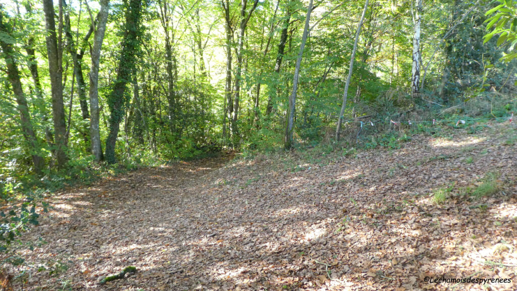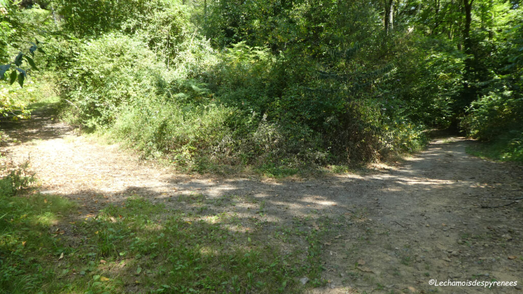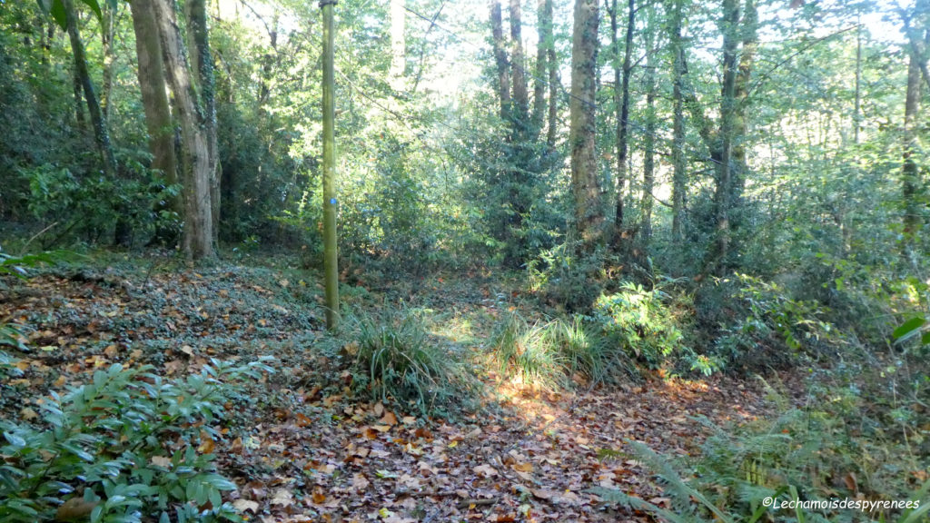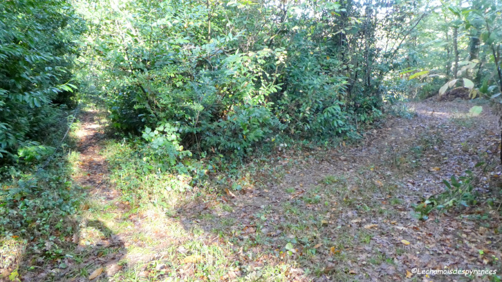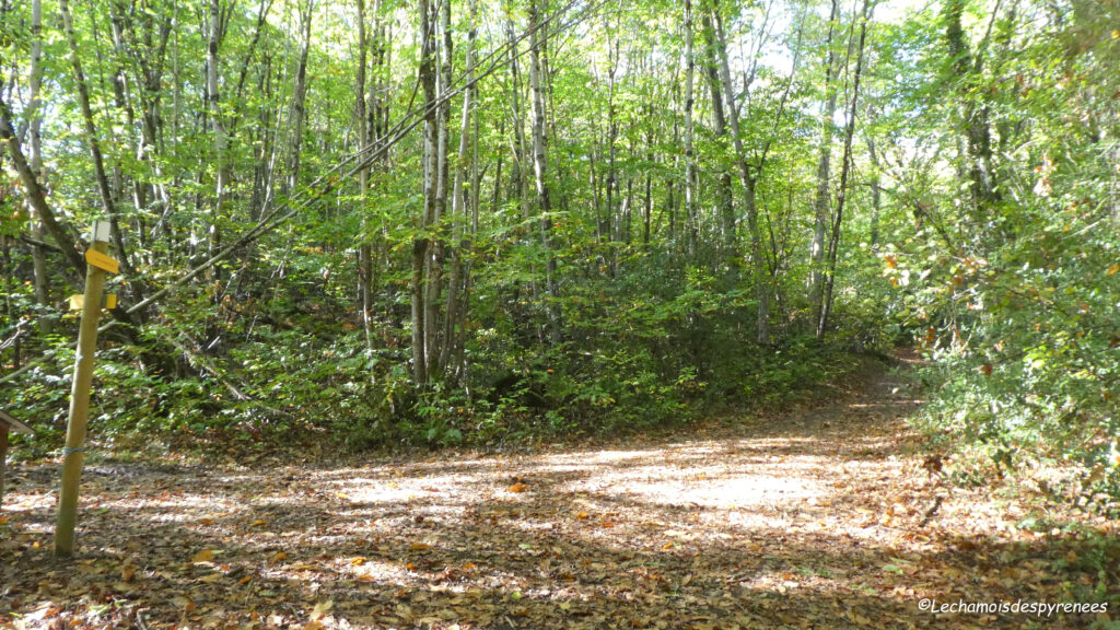 A cet endroit continuer la piste en face s’enfonçant dans le bois